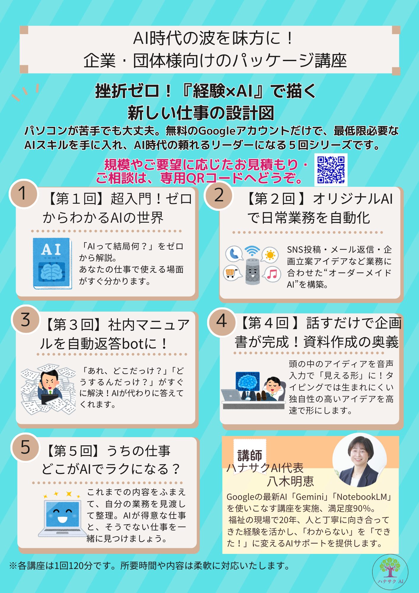 無料のGoogleアカウントだけで、最低限必要なAIスキルを手に入れ、AI時代の頼れるリーダーになる5回シリーズ講座